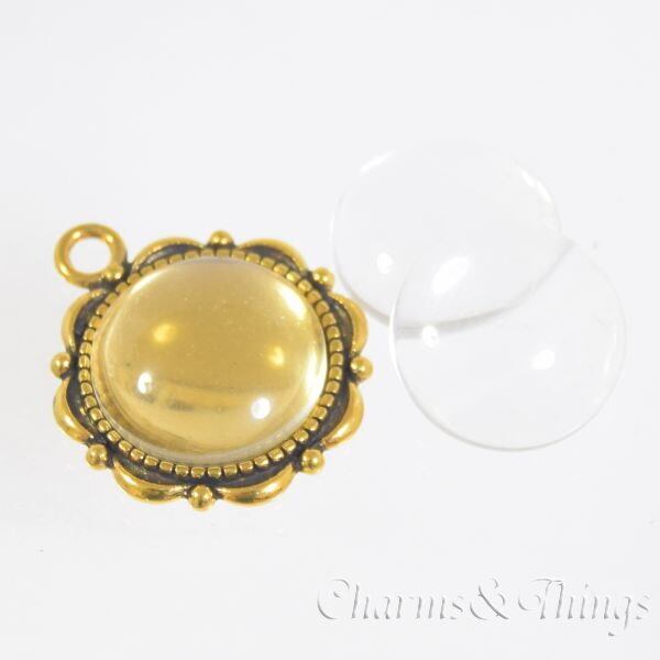 C&T ミール皿 と ガラス カボション 薔薇 ラウンド アンティークゴールド (各4個入) アクセサリーパーツ レジン素材 セッティング【FD1208】