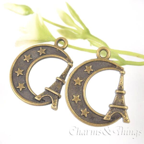 C&T 月とエッフェル塔 チャーム アンティークブロンズ (8個入) アクセサリーパーツ【SC2206】