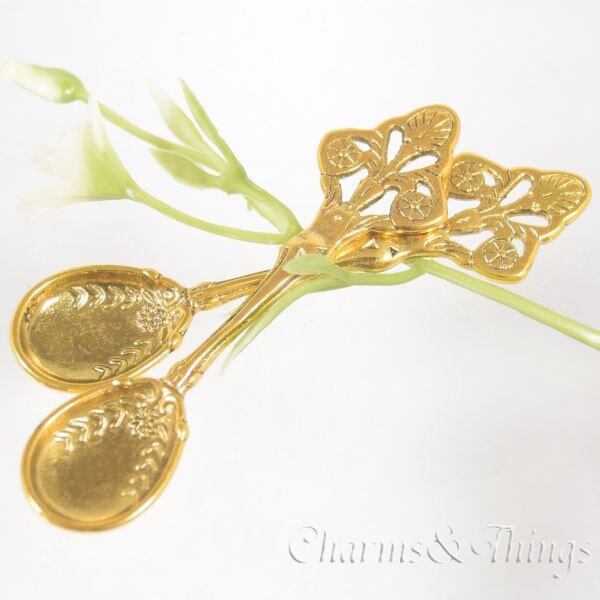 C&T スプーン チャーム 大きい 花模様 アンティークゴールド KN (3個入り) アクセサリーパーツ【SC121】