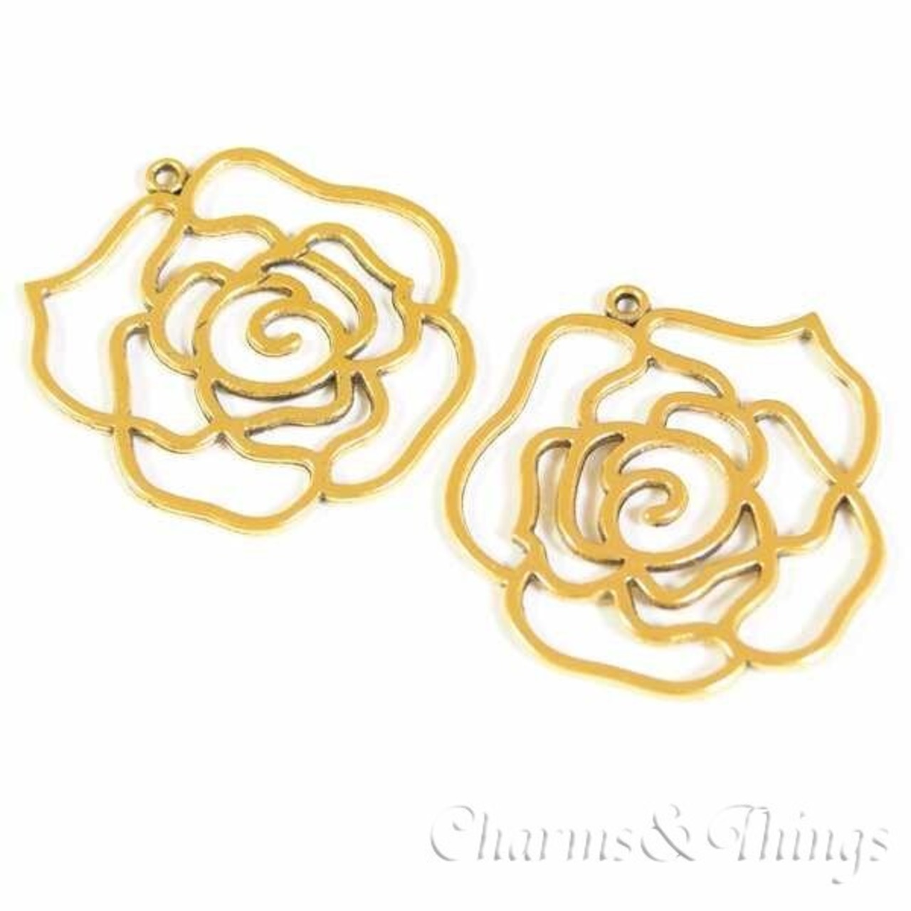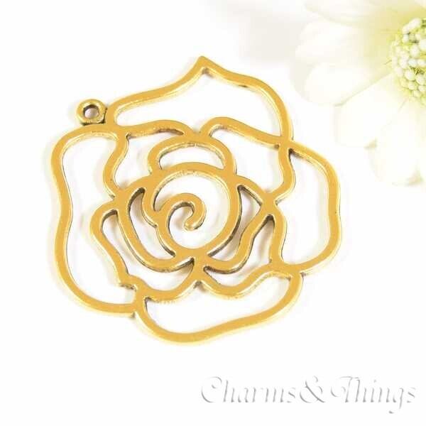 C&T バラ 花 チャーム 大きな薔薇 アンティークゴールド(1個入) アクセサリーパーツ 【SC1516】 空枠