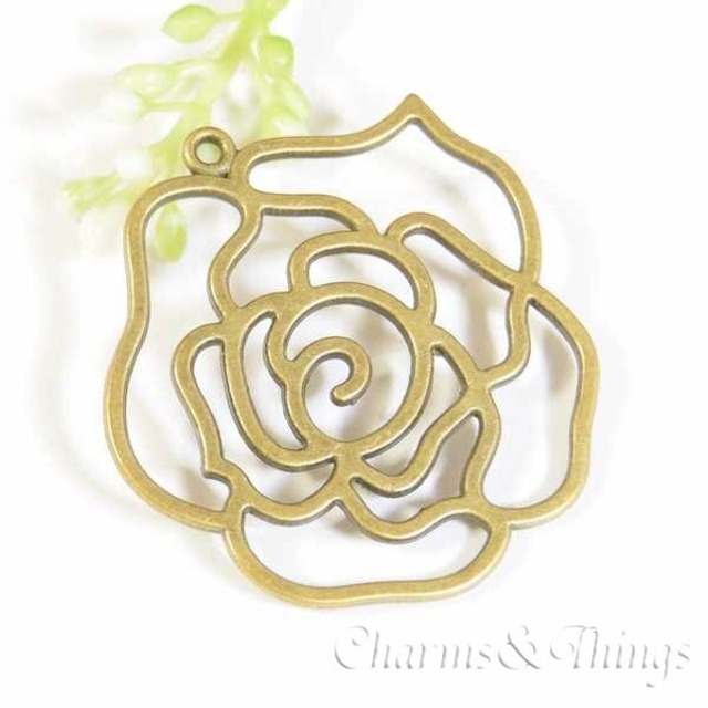 C&T バラ 花 チャーム 大きな薔薇 アンティークブロンズ (1個入) アクセサリーパーツ 【SC1516】 空枠