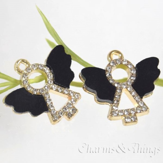 C&T 天使 ブラック エンジェル チャーム ラインストーン (2個入) アクセサリーパーツ【SC1637】